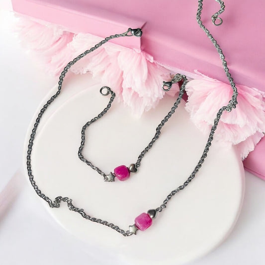 Set Pink SH1 – Mokoša touch Handmade jewelry set made of pink glass beads and surgical steel - necklace and bracelet