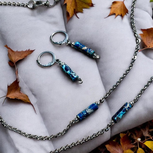 Set Blue Jasper SJ1 – Voice of Perun Handmade set of blue jasper and surgical steel - earrings, bracelet and necklace