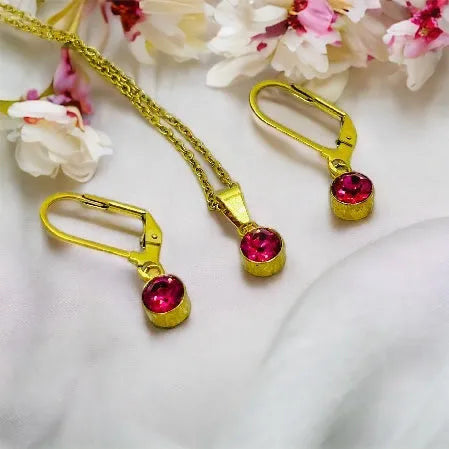 Set with pink stones S44 – Softness and elegance Handmade set of earrings and pendant with pink stones and surgical steel in gold finish Collection: Jewels of the Slavs