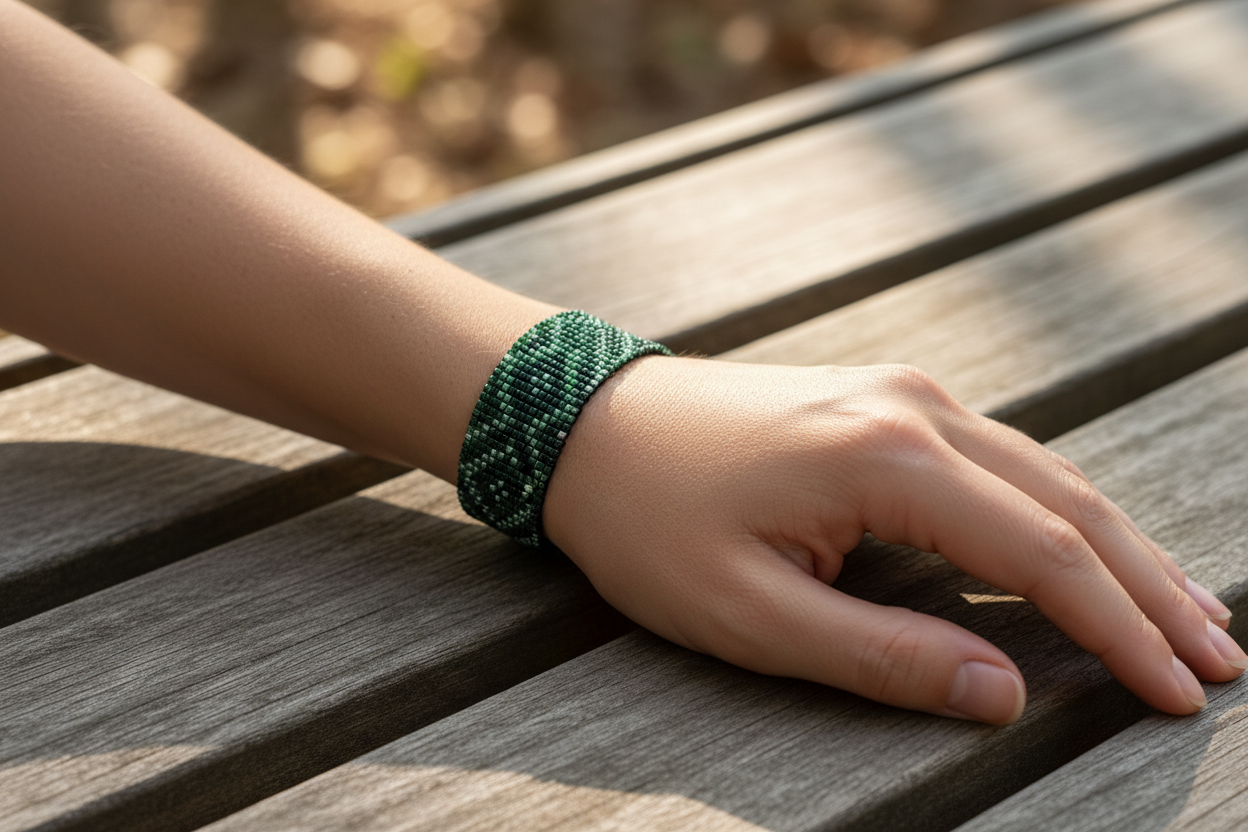 Zelená je farbou života, rovnováhy a obnovy. V tmavom odtieni symbolizuje aj ochranu, vnútorný pokoj a silu prírody. Tento náramok je ako kúsok lesa na zápästí – tichý, ale silný sprievodca každého dňa.